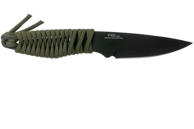ANV P100 Cerakote Sleipner, OD Green Paracord P100-017, Black Kydex Sheath, Neck Knife