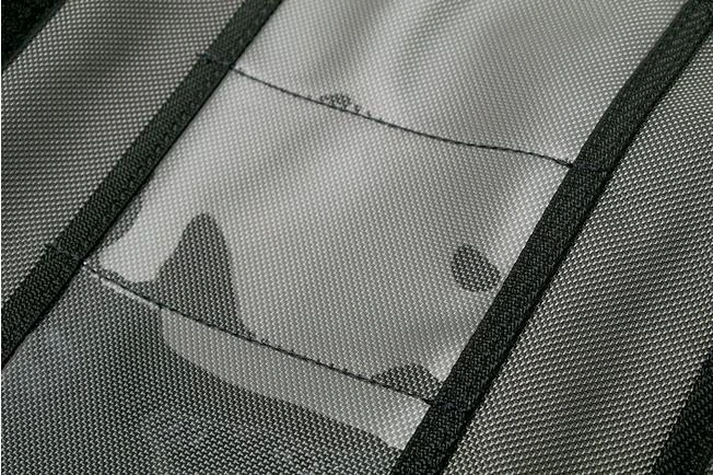This Benchmade Knife Roll 50019 knife bag has enough room for eleven pocket knives and two pens. The perfect place to safely store your collection. The compartments for the knives are made from translucent plastic. As such you can immediately see where each knife is located. The outer flap of the bag has been enhanced with two eyes. With it you can also hang the bang in order to display your entire collection.