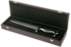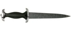 The Böker Manufaktur Swiss Dagger Mosaic Damascus 121552DAM is a cool dagger knife that was produced according to an ancient design. Its roots go back to the start of the 13th century. In the 15th and 16th century this type of dagger knife was used as a secondary weapon by many soldiers. It is also called a ‘baselard’. The strong horizontal knife guard and pommel around the handle are very characterizing for this type of knife.