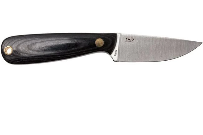 The Brisa Necker 70, 9803 is a practical neck knife with a traditional Scandinavian look and feel. The long Finnish tradition of producing knives is incorporated in every EnZo knife. The full-tang blade is made from Sandvik 12c27-steel. Full-tang means that the entire blade runs throughout the handle. The shiny micarta scales offer enough grip. The knife comes with a leather belt sheath. As we often see with Scandinavian sheaths the knife reaches far inside the sheath to make sure you don’t lose it.