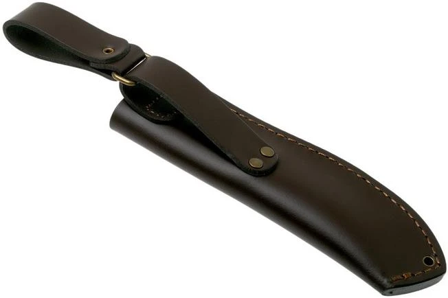 The Brisa Nessmuk 125 sheath is made from sleek artificial leather. It is enhanced with a type of double belt loop: a fixed one on the sheath itself, and a ‘dangler’ belt loop attached to it. The dangler offers you a little more freedom to move around because the sheath can hinge relative to your belt.