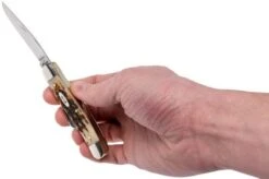The Case Medium Stockman is a true classic in the pocket knife world. This pattern is almost as old as the entire category of Traditionals. This Case Stockman is a very pure incarnation of this classic model. It has been enhanced with three blades: a clippoint blade as main blade, a 5.0 cm sheepfoot blade and, the for the Stockman almost indispensable blade, the Spey-blade: a spearpoint with a type of blunt tip. Originally this type of blade was used to skin game.
