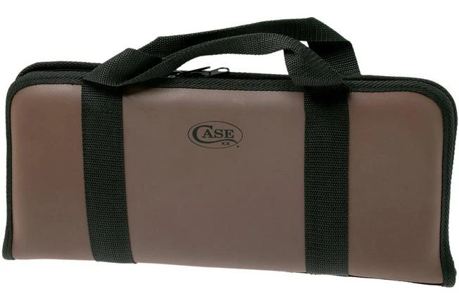 The Case Small Leather Knife Case 01074 is a luxurious knife bag with enough room for 24 (Case) pocket knives. On the inside you will find two surfaces enhanced with loops. Each surface has enough room for 12 knives, so 24 knives in total. Because of the thick padding and the separation flap in the middle the knives will never touch each other. A zipper makes sure you don’t accidentally open the bag. This is the perfect bag to store and transport your case collection.