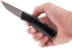 This stunning pocket knife is a foldable alternative for the traditional Scandinavian Puuko knife. The Brisa Birk 75 looks slim for an outdoor knife and is easy to open with the help of the thumb stud. The blade is locked by a decent linerlock. The Birk 75 feels great in hand and, because of its compact size, is perfect for daily use.