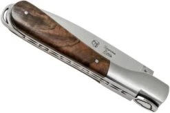 Classic French hand-made Laguiole pocket knife. Closed length: 12.3 cm. Features a 12c27 steel blade and back-lock system. Handle is made from walnut wood.
