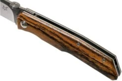 The Fox Knives FX-525B is a cool pocket knife, designed by Bob Terzuola. He is considered to be one of the fathers of the modern tactical knife. For over 30 years his designs are leading in the pocket knife world. This Fox FX-525 is a great example. It is really cool how the bocote scales are enhanced with subtle shapes. It looks great, and it also ensures that it feels great in hand.
