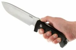 The LionSteel M7 is made as an all-round fixed knife for outdoor use. The foundation for this knife was a limited edition knife that was made with Moletta, the nickname of knife maker Michel Pensato: the Carthago. With some adjustments this became the M7: a knife with a full tang blade and a micarta handle. The handle is large enough for your entire hand. They made space for your index finger to be able to control the knife better. A superficial milled pattern in the micarta improves the grip but it also gives the knife a special look, one that is typical for LionSteel knives. Unique for this knife is that the handle is milled from one piece of micarta. Usually two individual parts are screwed against the knife, but for the M7 the blade actually falls into the micarta.