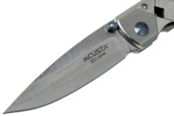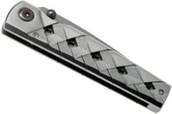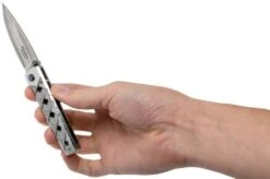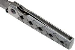 The Mcusta MC-37D Katana is a stylish gentleman’s knife. You can clearly see that the handle design is inspired by the shape of a Japanese katana. The milled parts, lines and patterns have all been executed beautifully. Both the handle and the blade are made of stunning Damascus steel.