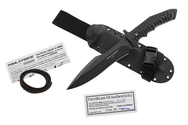 The Pohl Force Tactical Nine is a robust survival knife made for professional use, designed by Dietmar Pohl. The Tactical Nine was inspired by the Pohl Force MK-9. Designed for the Last Blood film. The final installment of the five-part series about former Green Beret soldier John Rambo.