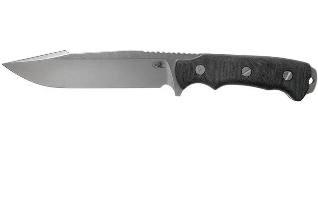The Rick Hinderer Fieldtac 6″ Black micarta is a large and solid fixed knife, designed by Rick Hinderer. It is made from 5 mm thick steel, perfect for demanding use. The total length of 29 cm of the Fieldtac is impressive. A top-quality fixed knife.